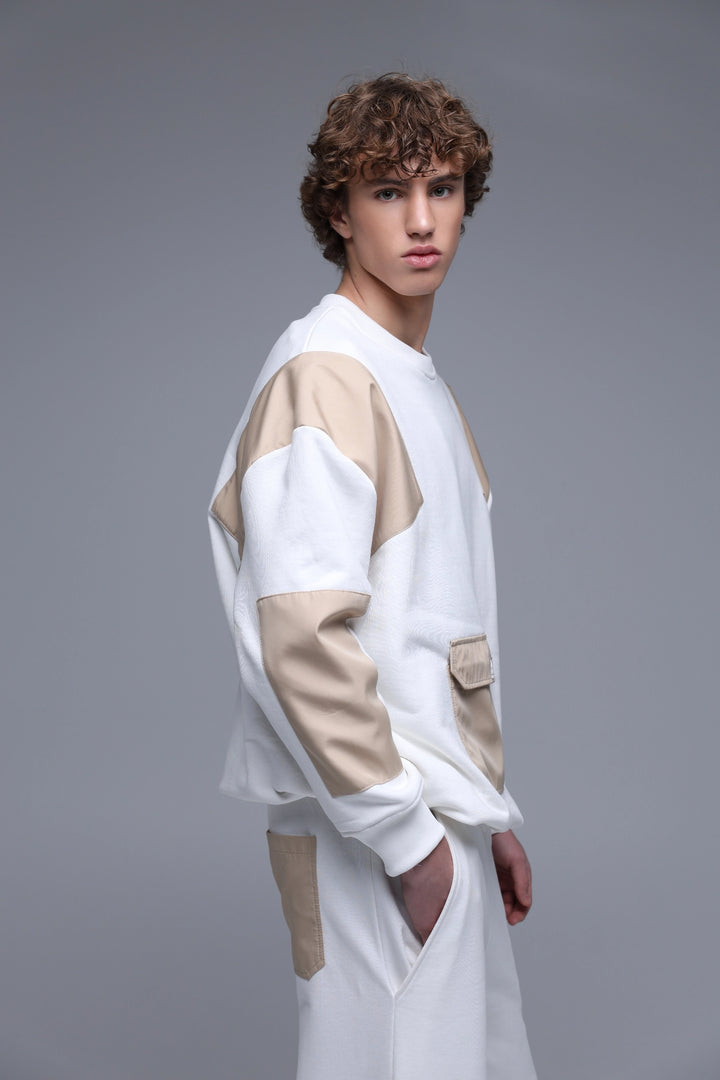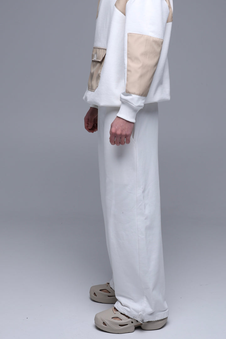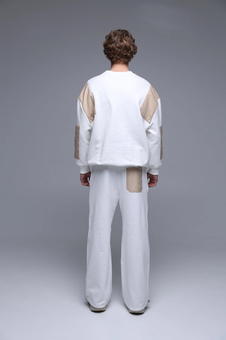 Embrace versatility and refined elegance with these ivory luxe oversized pants. Designed to redefine sport-casual sophistication, they are crafted from a luxurious cotton-elastane blend, ensuring the perfect balance of stretch and structure. The dark grey pocket detail introduces a subtle yet striking contrast, while metallic fasteners at the hem allow for customizable volume, offering relaxed or tapered silhouettes. Paired seamlessly with the matching oversized sweatshirt, these pants become a cornerstone of Saint Issa’s Capsule Collection, delivering effortless modernity, comfort, and elevated sporty chic appeal.