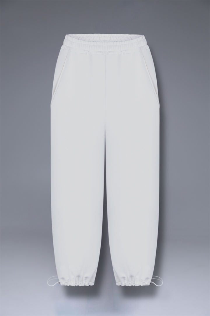 Embrace versatility and refined elegance with these ivory luxe oversized pants. Designed to redefine sport-casual sophistication, they are crafted from a luxurious cotton-elastane blend, ensuring the perfect balance of stretch and structure....
