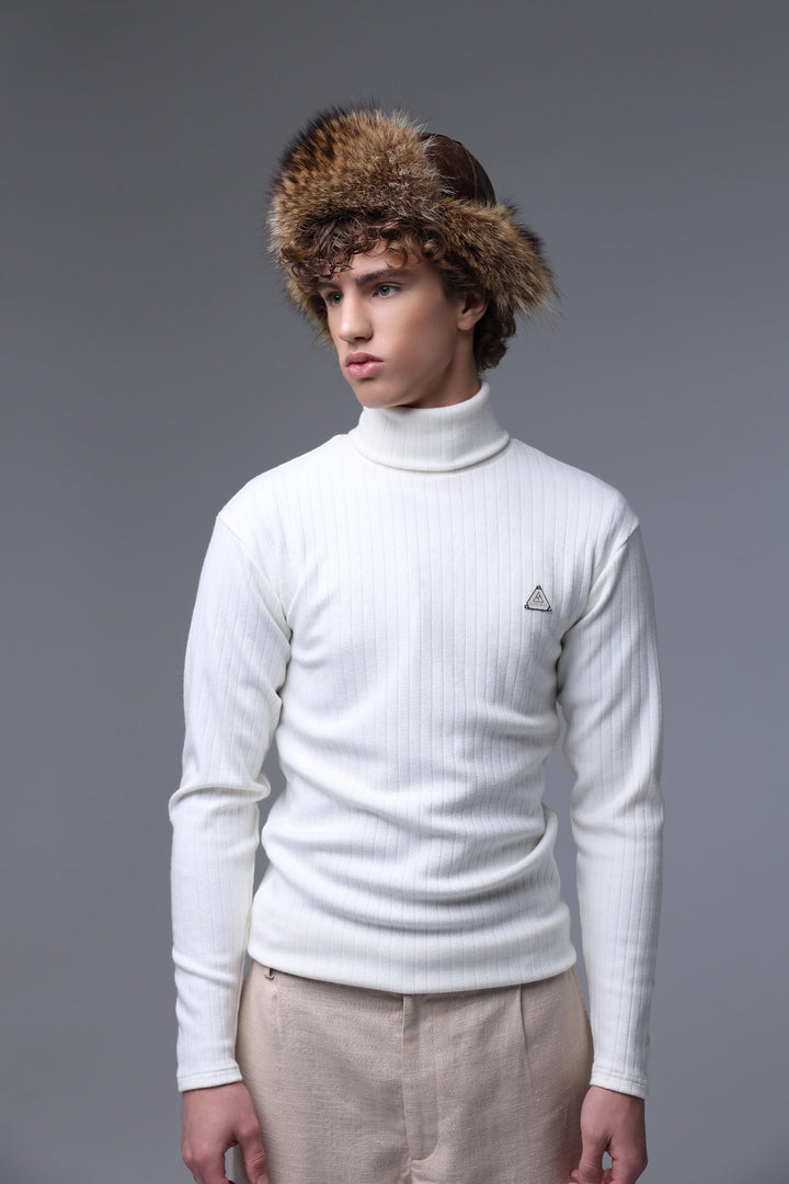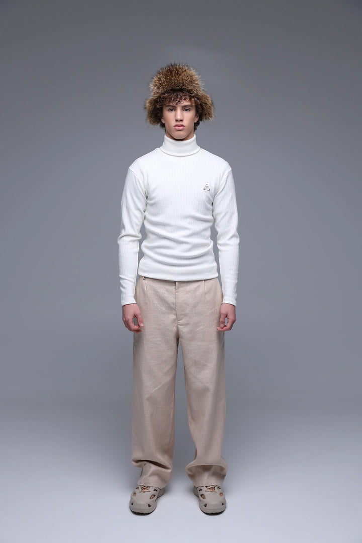 Exude understated elegance with this long-sleeve turtleneck, crafted in a soft milky white hue for a refined and timeless look. Made from a luxurious blend of 48% viscose, 31% polyester, and 21% nylon, it offers a smooth, high-quality finish and medium-to-thick fabric perfect for year-round wear. The sleek design is complemented by a signature metal Saint Issa logo, adding a subtle yet distinguished touch. Ideal for layering or wearing solo, this versatile turtleneck transitions effortlessly from casual to formal settings, a key piece in Saint Issa’s Capsule Collection.