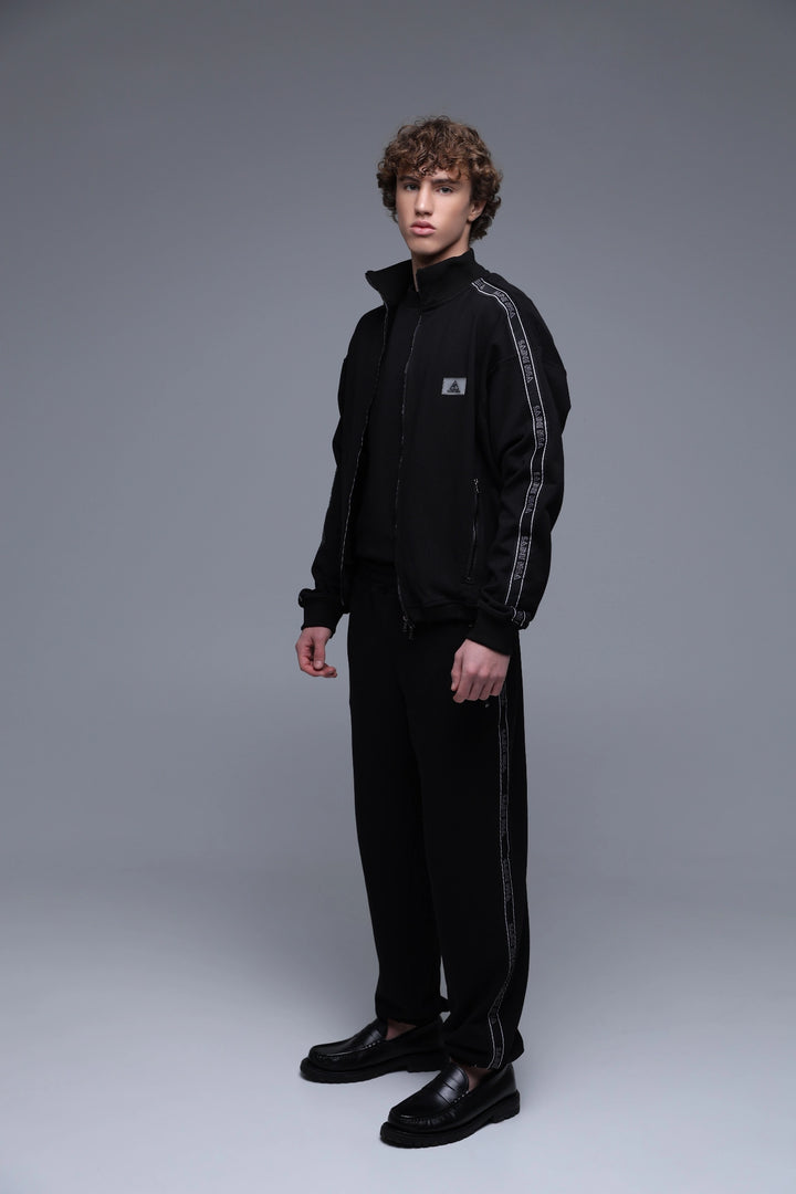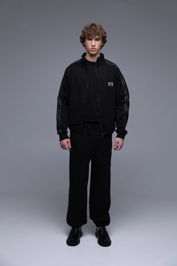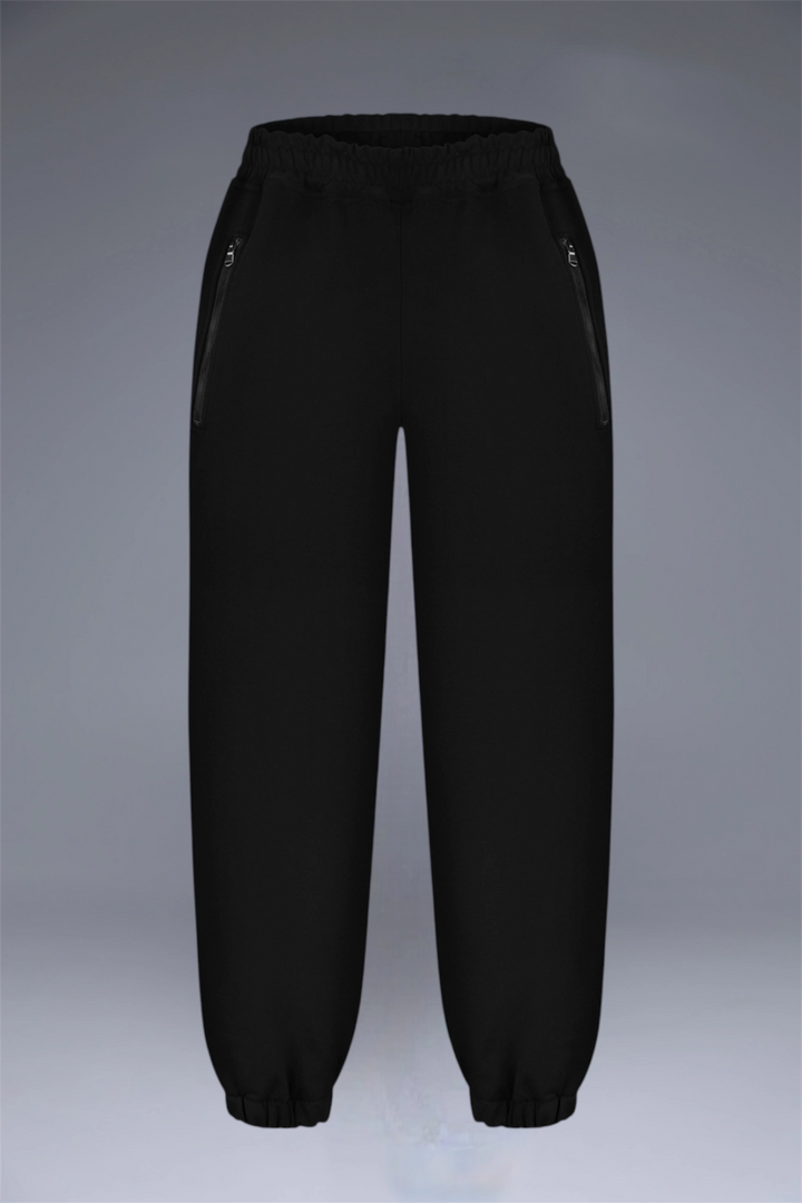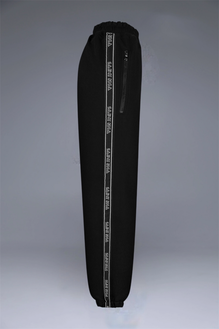 Elevate your athleisure style with our Pure Elegance Joggers in black, crafted from premium 360 gsm fabric (95% cotton, 5% elastane) for superior comfort and durability. These black joggers feature a vertical stripe running down the side of each leg, showcasing the full name "Saint Issa" elegantly repeated multiple times. An elastic waistband and cuffs ensure a secure fit, while YKK zippered pockets add a touch of functionality. Part of our capsule collection, these joggers pair seamlessly with matching tops for a cohesive, high-fashion look. Experience the perfect blend of comfort and sophistication with Saint Issa.